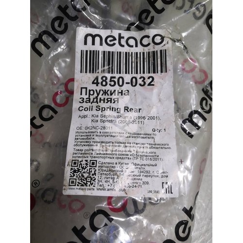 Описание Пружина задняя новые аналог METACO пара комплект Киа Спектра Шума
